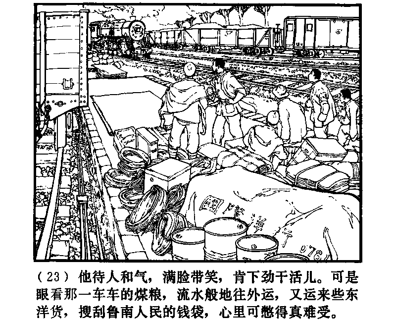 彼は人つきあいに角もたてず、いつもニコニコして、きつい仕事もこなした。しかし目は貨物列車を向いていた。石炭や糧秣が流れるように運び出されていき、かわりに運びこまれてくる日本の製品がまた魯南の人民の財布のなかみをしぼりとっていくのは、我慢のならないことだった。