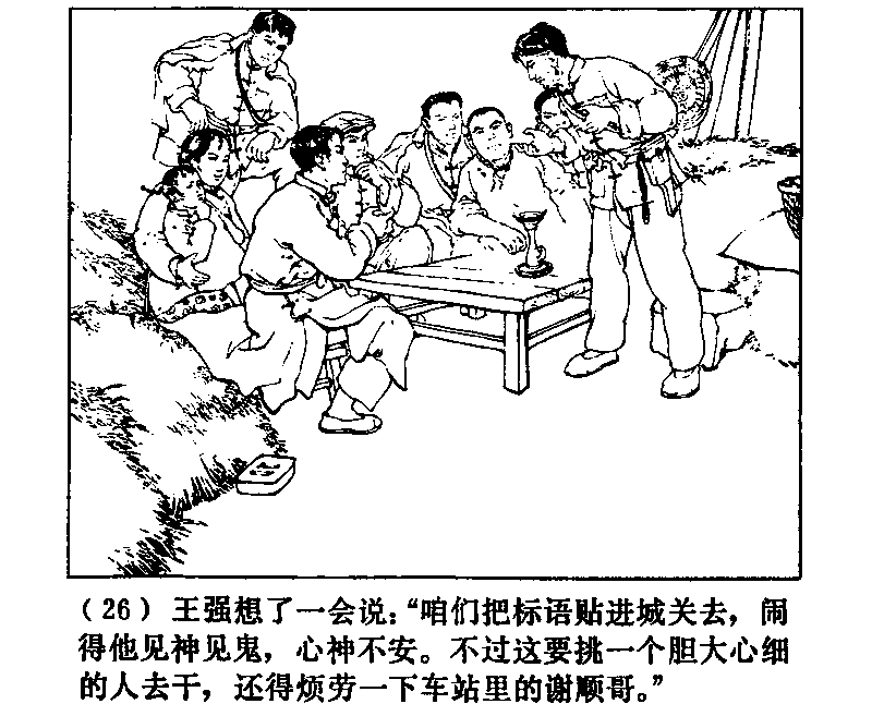 「おれたちがスローガンを町のなかに貼って、あいつを疑心暗鬼にさせるくらいさわげば、精神を不安定にできる。しかし、これをやるには、大胆かつ細心な人を選ばないといけない。そして、駅の謝順アニイにやっかいをかけることになる。」