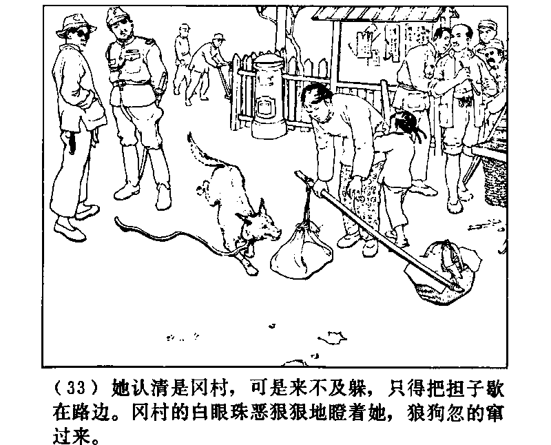 芳林嫂はそれが岡村だとわかったが、避けるには遅すぎ、しかたなく荷物をおろして道端でやすんだ。岡村の蔑むような目が芳林嫂をすごい目付きでにらむ。シェパードがいきなりやってきた。