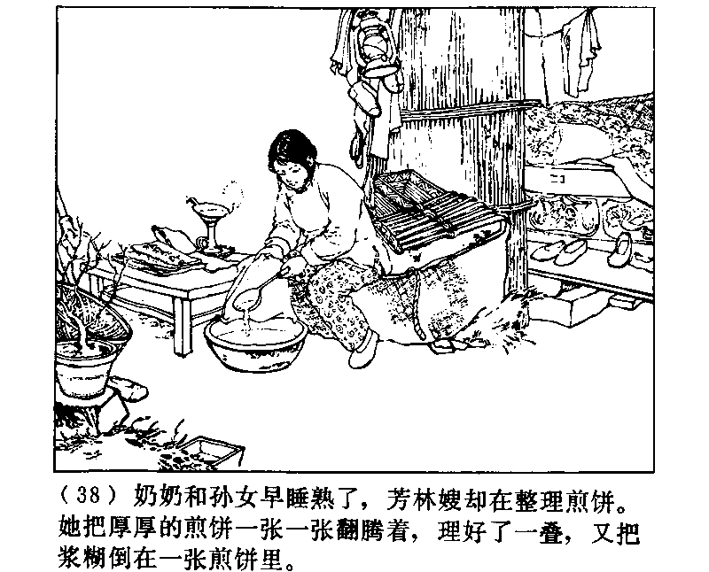 おばあちゃんと孫はさっさとぐっすり寝てしまった。しかし芳林嫂は煎餅を整理している。