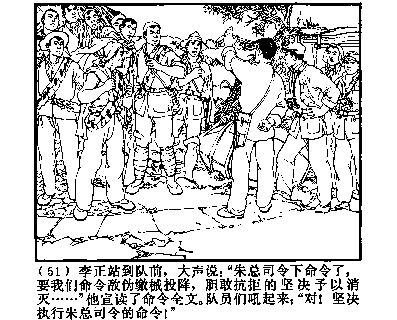 「朱総司令が命令をくだした!我々は敵・偽に対し武器をさしだして投降するよう命令する!敢えて抵抗するものは消滅させてもよい...」