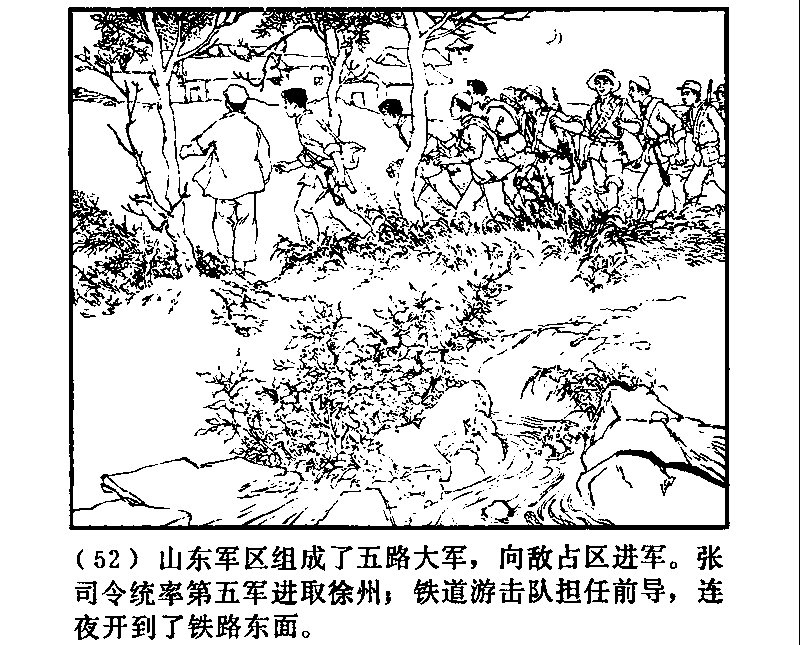 山東軍区は五方面の大群を編成し、敵の占領区に向けて進軍した。張司令は第五軍をひきいて徐州を取った。鉄道遊撃隊は先導をにない、夜っぴて線路の東側に進んだ。