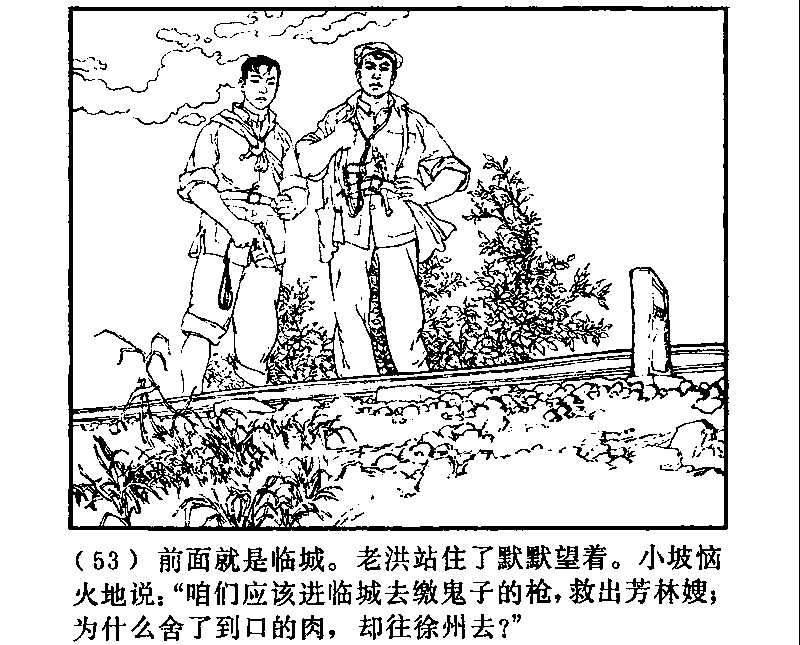 「おれたちは臨城に入って鬼子の武器をとりあげ、芳林嫂を救出するべきです。なんで口の前まで運んだ肉を捨ててまで徐州に行かなきゃならんのです?」