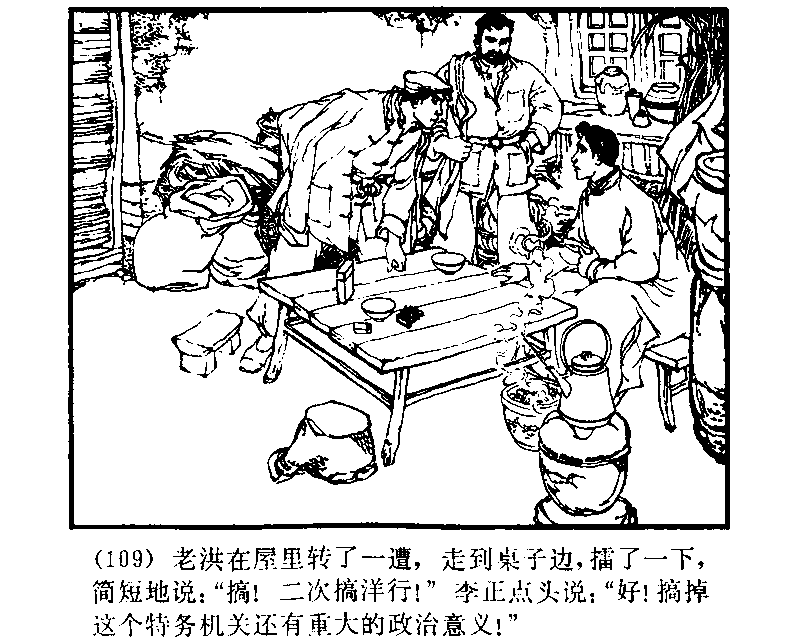老洪は部屋のなかをグルリとまわると、机に寄り、叩いて短かく言った。