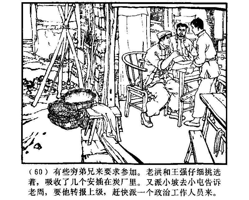 貧乏人が仲間入りしたいといってきたので、老洪と王強は子細に選び、数人をひきいれて、工場にいれた。また、小坡を小屯にやって老周に連絡し、上に早く政治工作にあたる人間をよこすよう伝えてもらった。