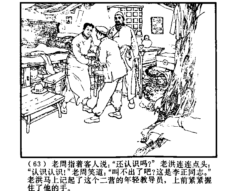 老洪はすぐにこの第二営の若い教導員のことをおもいだし、彼の手をとり固く握りしめた。