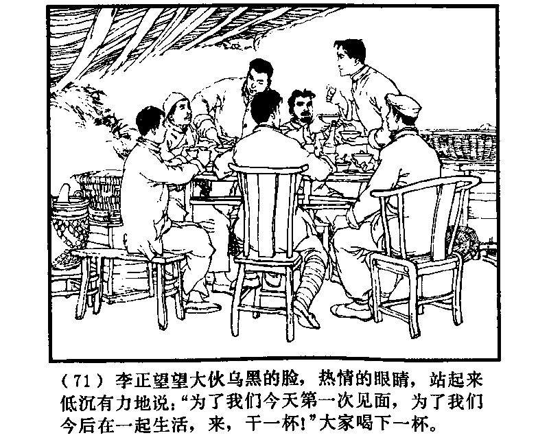 李正はみんなの黒い顔、熱い眼差しをみるとたちあがり、低く力強く言った。「今日のみんなとの初対面に、これからのみんなとの新生活に、乾杯!」みんなは一気にのみほした。