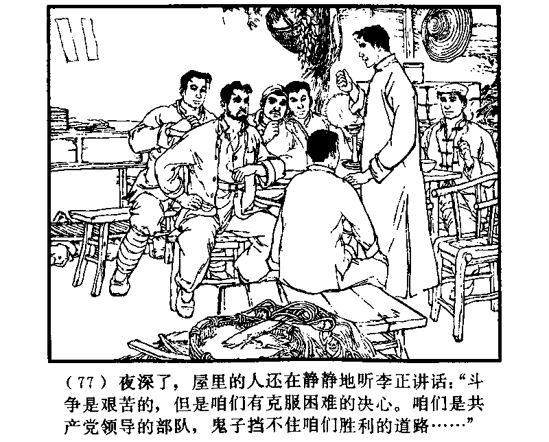 夜もおそくなり、部屋のみんなは静かに李正の話を聞いていた「闘争は困難だが、しかし我々には困難を克服する決意がある!我々は共産党が指導する部隊であり、鬼子には我々の勝利の道を邪魔することはできない」