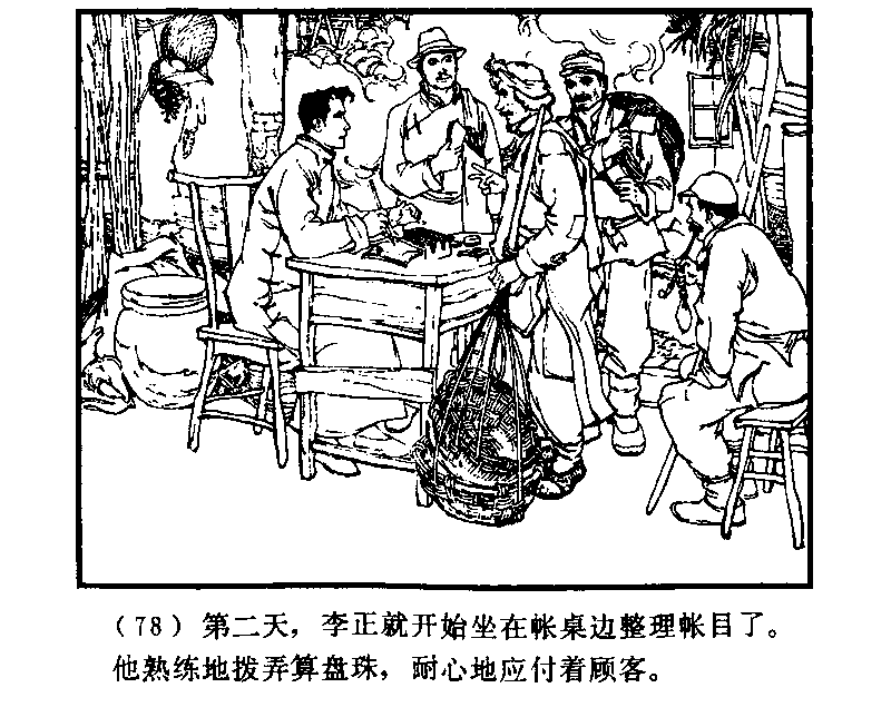 次の日、李正は帳場に座って帳簿をつける仕事をはじめた。そろばんをはじくことにも熟練しており、辛抱づよく顧客に対応した。