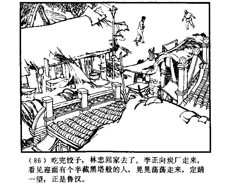 餃子を食べおわると、林忠は家に帰った。李正は炭廠に向かって歩くと、むかいから真っ黒な人がふらふらと歩いてきた。よく見定めてみると、まさに魯漢だった。