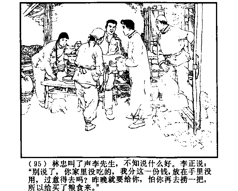 李正「言うな。食べものがないようだね。私がお金をもっているのに分けなかったから、気を悪くしたか?昨晩もしあなたにあげたら、またバクチをうちにいくとおもったんだよ。だから穀物を買ってきてあげたんだ。」