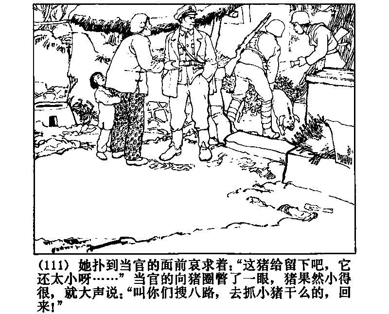 「おい八路を探せと言ったんだ。子豚をつかまえてなんになる。もどれ!」