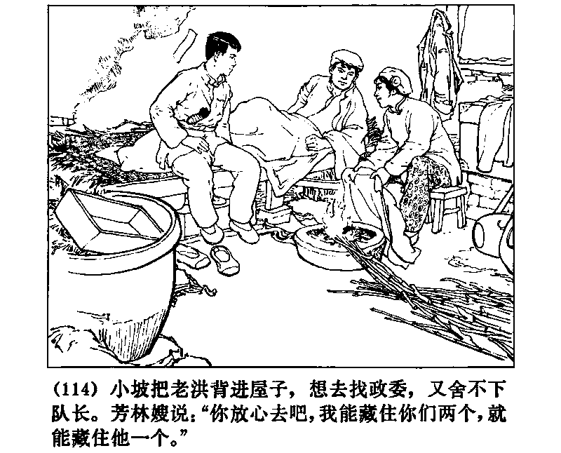 小坡は老洪をせおって部屋に入った。政委(李正)を探しにいきたかったが、隊長を置いていくわけにもいかない。