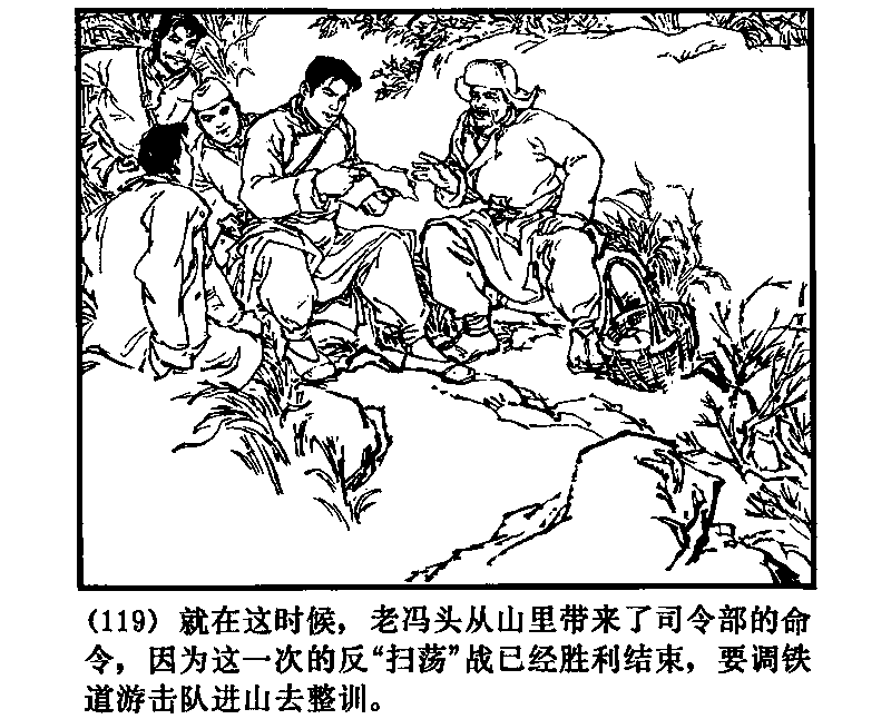 ちょうどそのころ、馮おじさんが山から司令部の命令をもってきた。というのも、この第一回反「掃討」の戦いはすでに勝利におわったので、鉄道遊撃隊を山に移動させ、訓練させようというのだ。