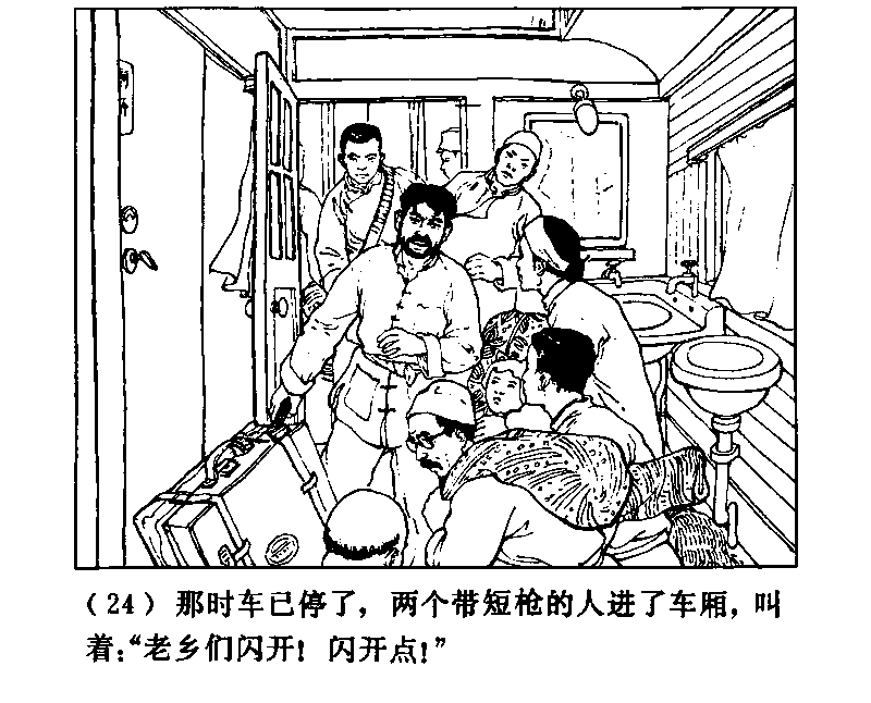 そのとき列車は停止していた。短銃をおびた二人が車両にはいってきて叫んだ。
