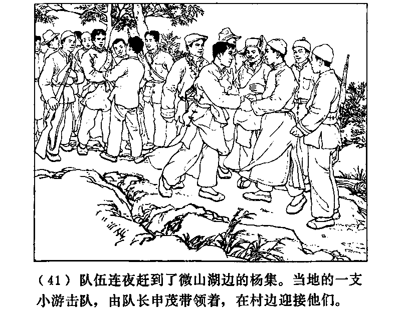 隊員たちは徹夜で微山湖ちかくの揚集に到着した。現地の小遊撃隊が隊長申茂にひきいられ彼らを迎えた。