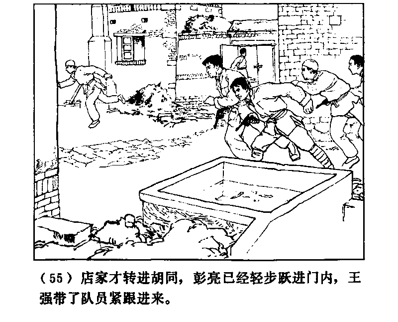 店主が路地をでていったとおぼしきころ、彭亮はすでに門のなかに入りこみ、王強も隊員をつれてすぐにあとから入ってきた。