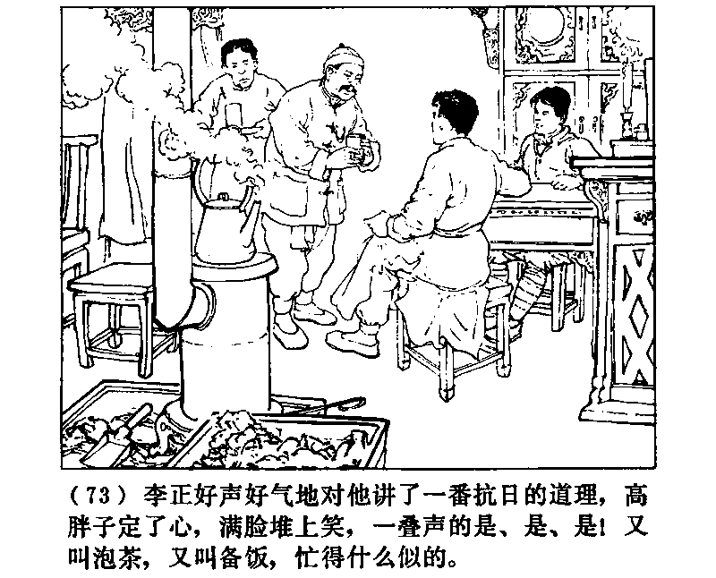 李正は言葉遣いも丁寧に抗日の道理を一通り話した。高のデブはおちつき、顔には笑みをうかべ、つづけざまに「はい、はい、そうですとも!」