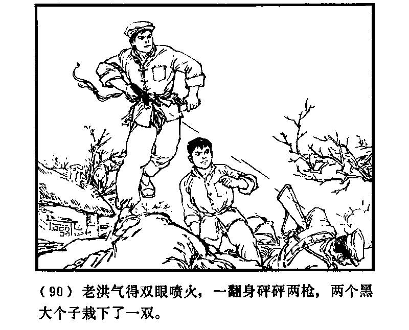 老洪は目から火が吹きでるように怒ると、体をかえしてボンボンと二発、二人の黒い大男を一度にやっつけた。
